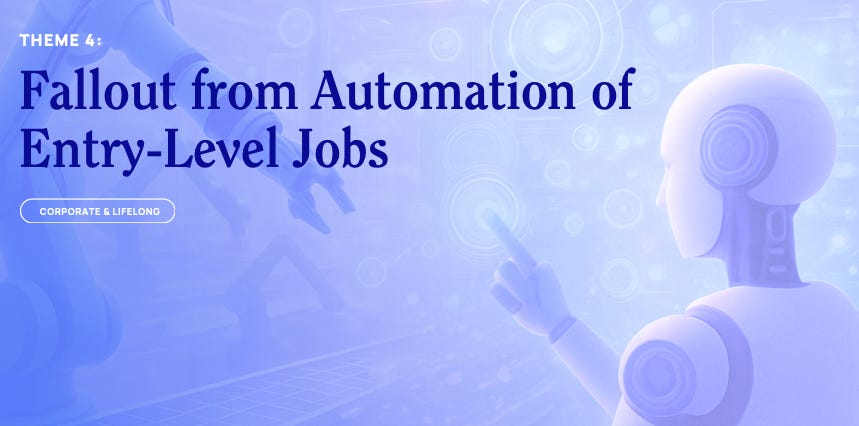 The career ladder has always relied on rungs: entry-level roles where young workers learned by repetition and supervision. Those rungs are now under threat. Analyst roles, junior reporters, research assistants — the kinds of jobs where you “learn by doing” — are also the ones AI is best at automating.