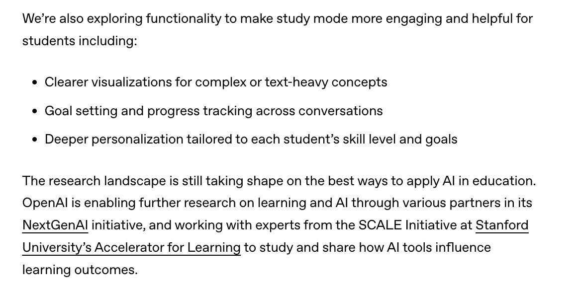 Study Mode won’t replace a great teacher. However, it is meaningful to see some of the most important AI companies not only talk about education, but actually build for it. Congrats to the OpenAI team on the launch! I’m excited to see where it goes from here.